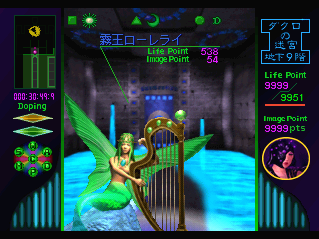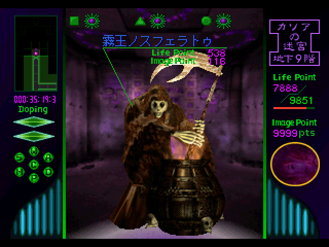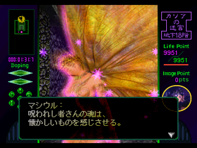上、上、下、下、L1、R2、R1、L2を押して、いずれかのボタンを押す画面で選択します。これでこのメニューが有効になります。確認音(キラキラ光る効果音)が聞こえたら、コントローラー2のスタートボタンを押してこのメニューを表示します。ダンジョン(ムービーダンジョンではありません)をクリックすると、ダンジョンにロードされます。中央に戻ると、自分のセーブにロードできます。そして、夢の世界に進みましょう。ダンジョンに入ったら、もう一度スタートボタンを押すと、デバッグメニューが再び表示されます。これにより、ダンジョンを移動して前後に移動する時間を節約できます。デバッグメニューオプションの78階から88階は、夢の塔です。ライフポイントについては、「ダメージ」オプションに移動し、4番目のオプションがあります。上下キーを使用してライフポイントを与える必要があります。ただし、ライフポイントオプションをクリックしても値はリセットされません。そのため、9999までこれを続けることができます。